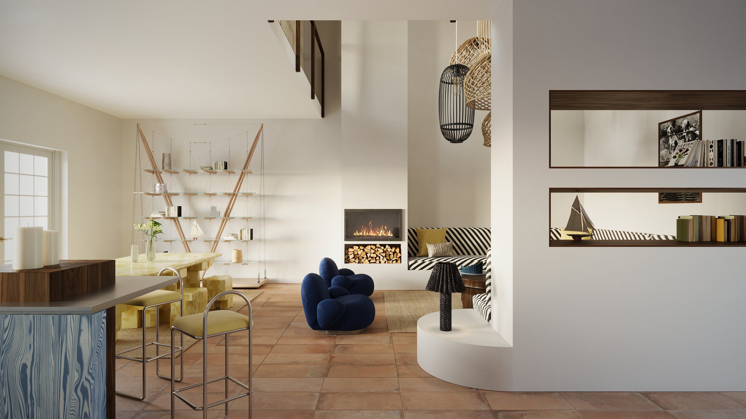 The interior was conceived as a serene frame for the exterior where the true artwork is the view of the canal and the colorful façades beyond. Soft tones, refined materials, and minimal gestures allow the light and landscape to take center stage, bringing vibrancy into the intimate spaces.